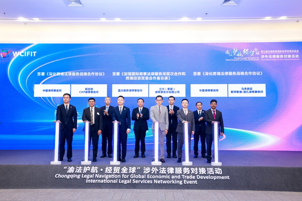 5月23日下午,由市司法局、市商务委员会主办,市律师协会、重庆国际商事仲裁院承办的“渝法护航·经贸全球”涉外法律服务对接活动在重庆国博中心举行。据悉,作为第七届中国西部国际投资贸易洽谈会(以下简称西洽会)主题活动之一,该活动聚焦西洽会涉外企业法律服务需求,搭建供需对接平台,为企业“走出去”和“引进来”提供优质高效法律服务保障。