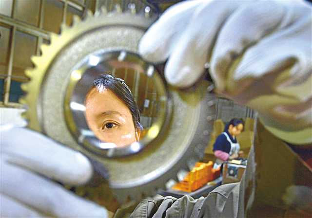 秋田齿轮生产车间,质检员正在检测产品质量。(本报资料图片)