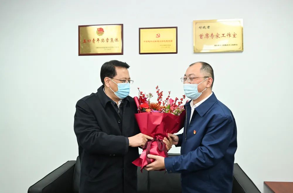 1月18日上午,市委书记袁家军看望慰问中电科芯片技术研究院首席专家付晓君。记者 苏思 摄/视觉重庆