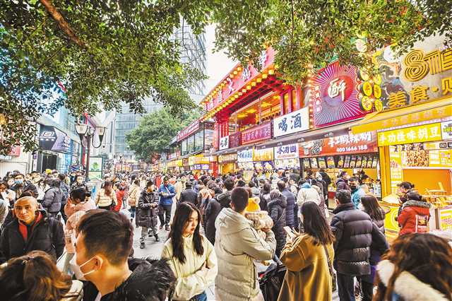 1月22日,大年初一,解放碑八一路好吃街人流如织。特约摄影 何超/视觉重庆