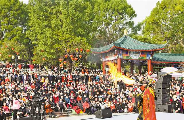 1月22日,永川区兴龙湖公园,演员正在表演川剧绝活《变脸》。当日,精彩节目轮番上演,为市民献上丰富的文化大餐。特约摄影 陈仕川/视觉重庆