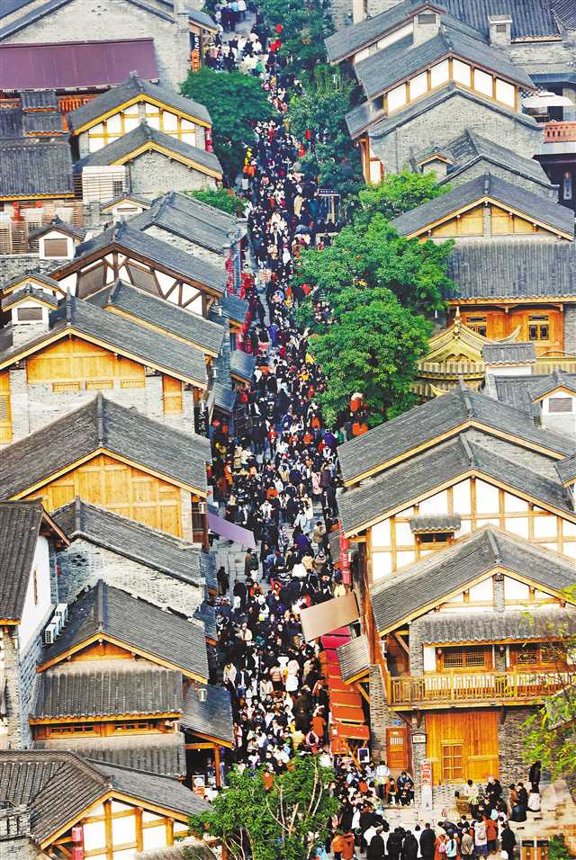 1月22日,渝中区十八梯景区,游客和市民在此赏景玩耍,欢欢喜喜过新年。特约摄影 钟志兵/视觉重庆