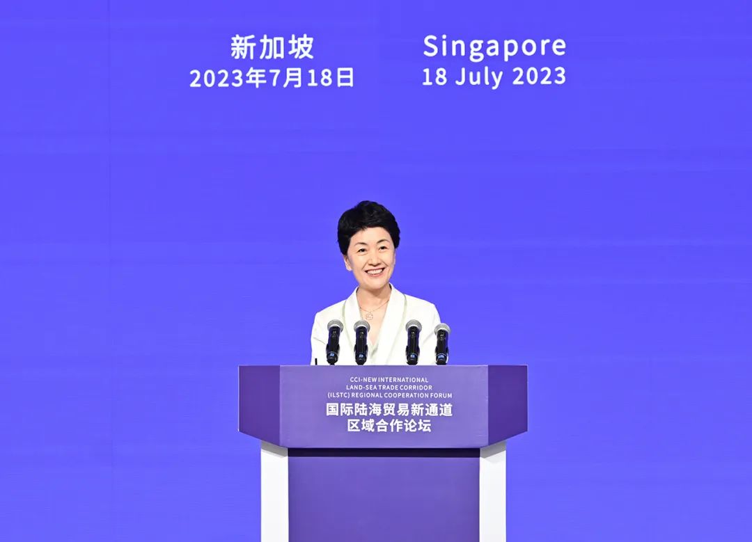 孙海燕说,重庆是贯通陆上和海上丝绸之路的关键节点。国际陆海贸易新通道为重庆和广大中国西部地区插上了通过“一带一路”实现腾飞的翅膀。开行以来,在各方共同努力下,今天的国际陆海贸易新通道全线便捷畅通。今天的重庆站在了全新高度,有更扎实基础和更优越条件为中新关系新定位、中国式现代化和“一带一路”建设作出更突出的贡献。国际陆海贸易新通道将成为带动整个地区进步的强劲动力带,重庆将成为这条动力带上最耀眼的明珠,释放巨大发展潜能。希望大家抓住时机、积极参与,与重庆、新加坡和国际陆海贸易新通道携手腾飞。