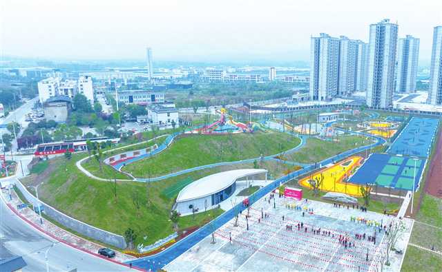 大足区万古鲤鱼灯舞体育公园建成后成为周边市民健身聚集地