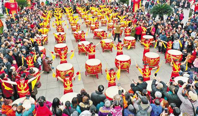 北碚区缙云广场,非遗“三圣大鼓”给市民带来节日欢乐。记者 万难 摄