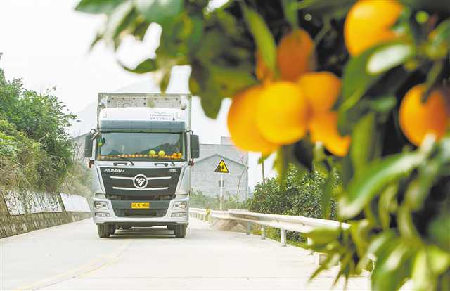12月15日,云阳县普安乡,装满出口脐橙的货车出发。当日,云阳县鑫池农业有限公司自营出口直发印度尼西亚的首批50吨脐橙起运。龙帆 摄