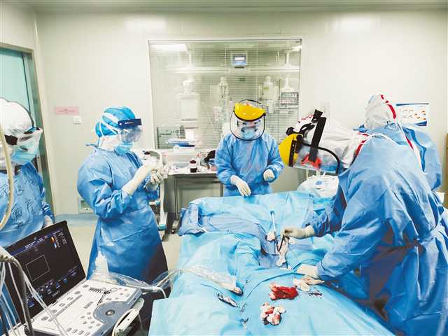 图①:重庆市第八批支援湖北医疗队专家团队正在给患者做手术。(重医附一院援武汉国家医疗队供图)