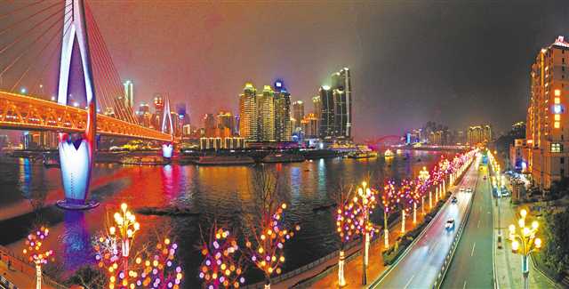 新春的脚步近了,重庆的街头巷尾,迎春灯饰亮了。