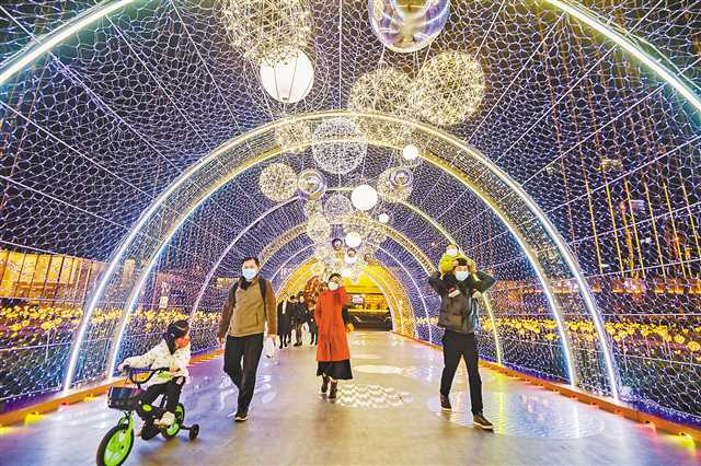 2月6日,江北区国金中心,市民正在欣赏璀璨闪烁的灯饰。首席记者龙帆摄/视觉重庆