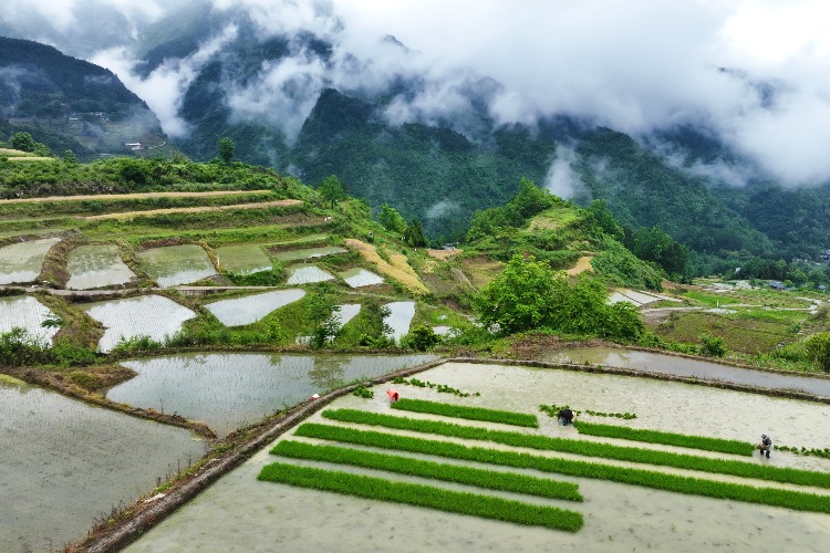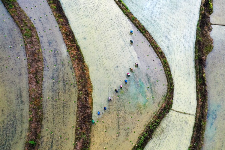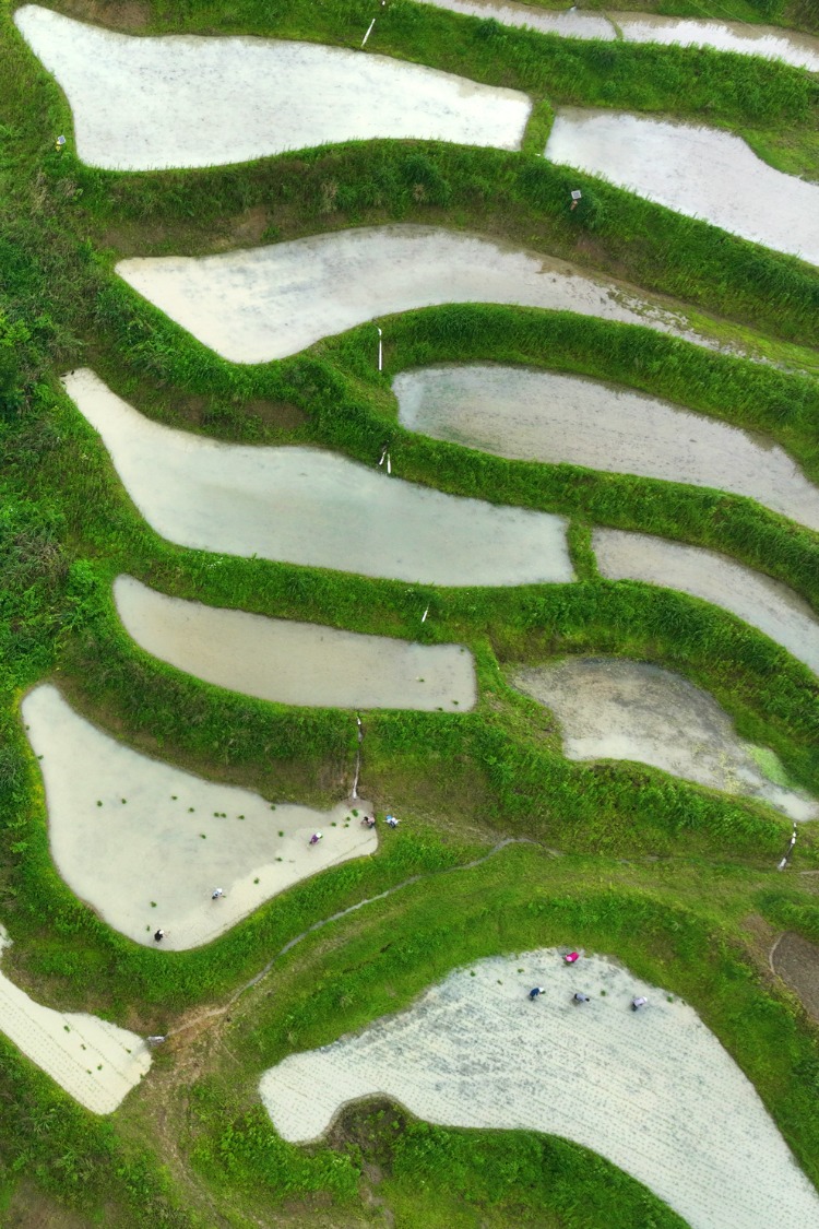 近年来,该镇在梯田里种植有机水稻,并采用稻鱼、稻虾、稻鳅套种模式发展立体农业,将梯田打造成了该区乡村振兴的示范基地。时下,村民们抓住农时抢插稻秧,以确保实现增产增收。