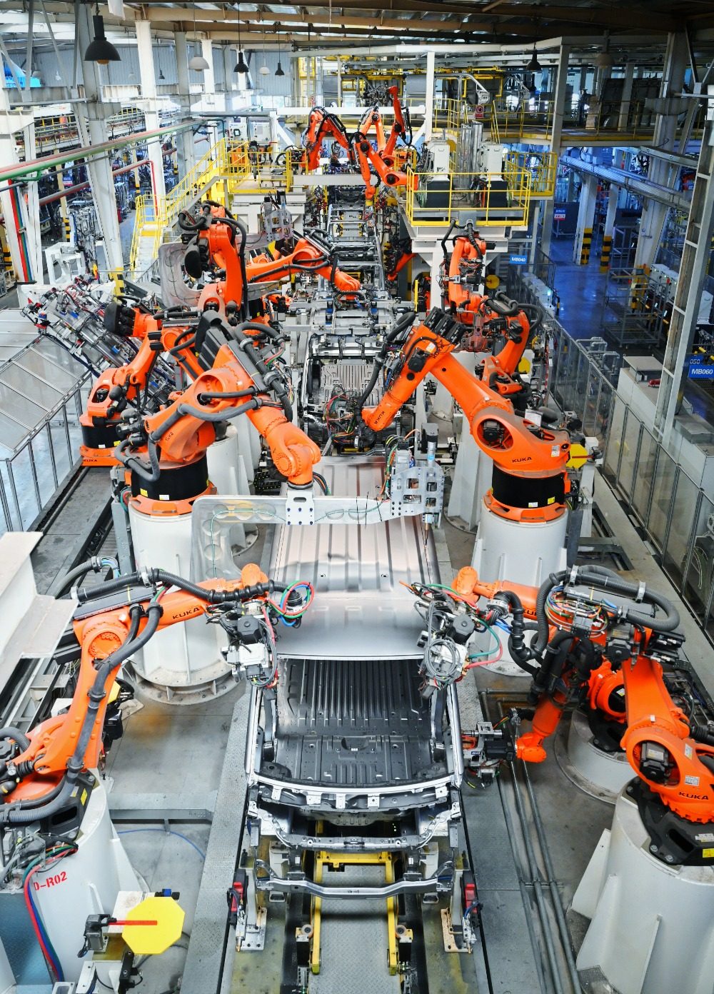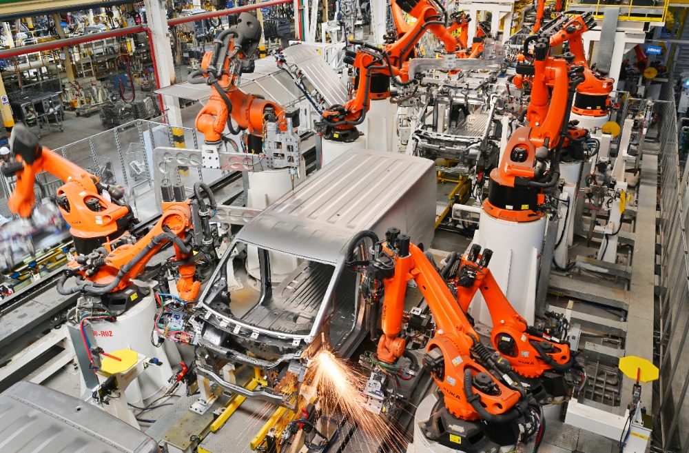10月9日,重庆高新区,重庆长安跨越商用车有限公司生产线上,工业机器人正井然有序工作。首席记者 龙帆 摄