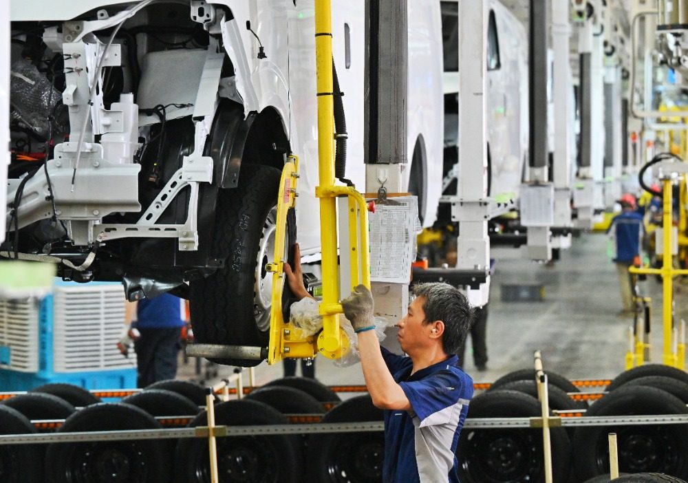 10月9日,重庆高新区,重庆长安跨越商用车有限公司生产线上,工人正在忙碌。首席记者 龙帆 摄
