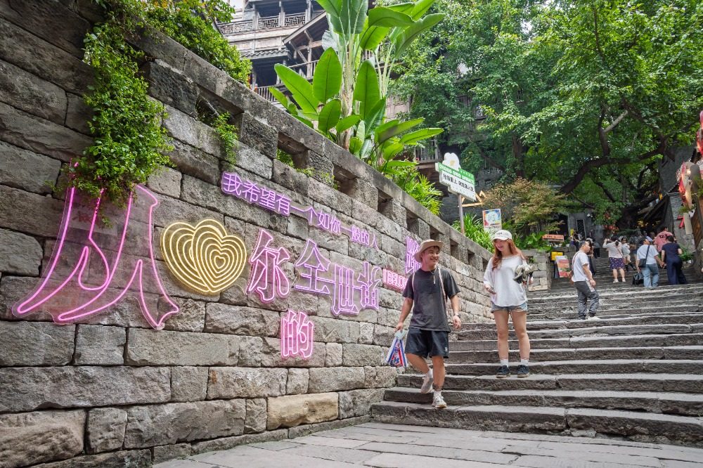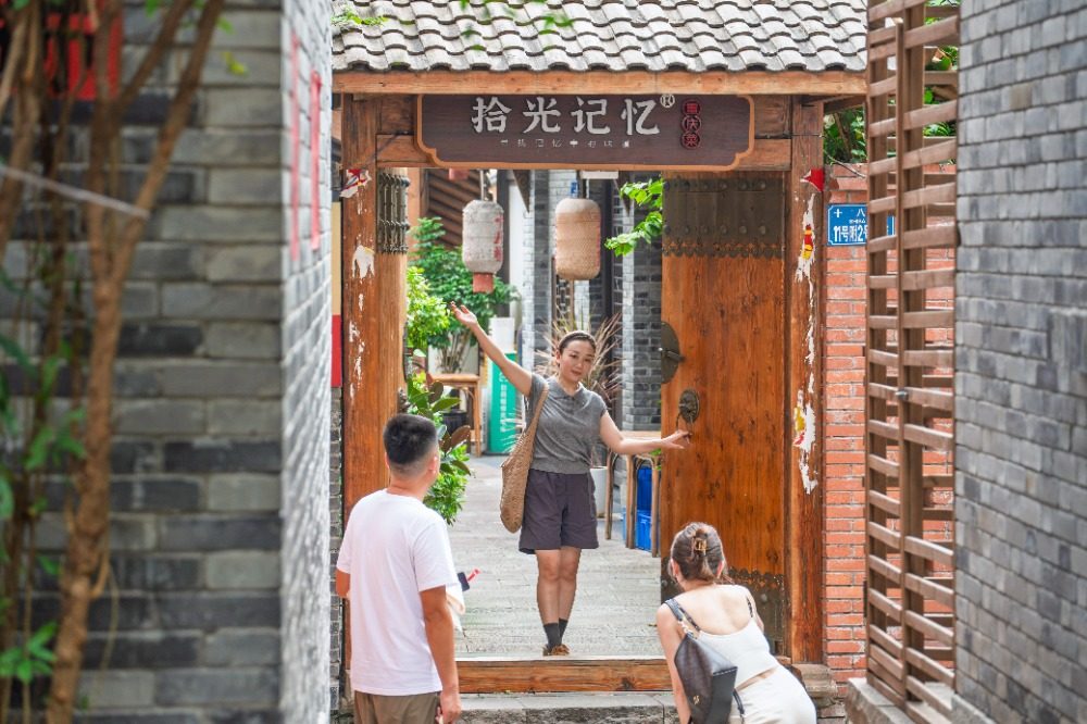 10月11日,渝中区十八梯传统风貌区,游客在街巷里打卡拍照。记者 李雨恒 摄