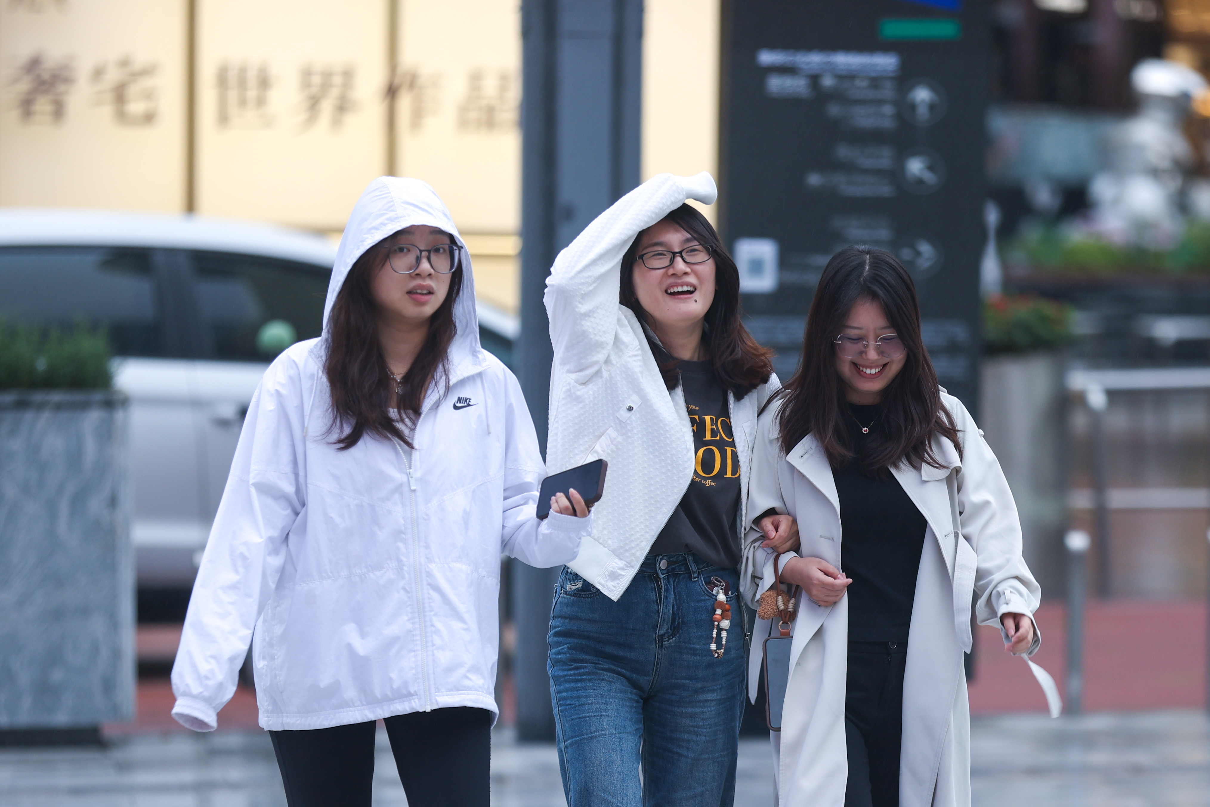 近日,阴雨连绵,气温持续降低。不少市民、游客出行游玩都换上了长衣、长裤。