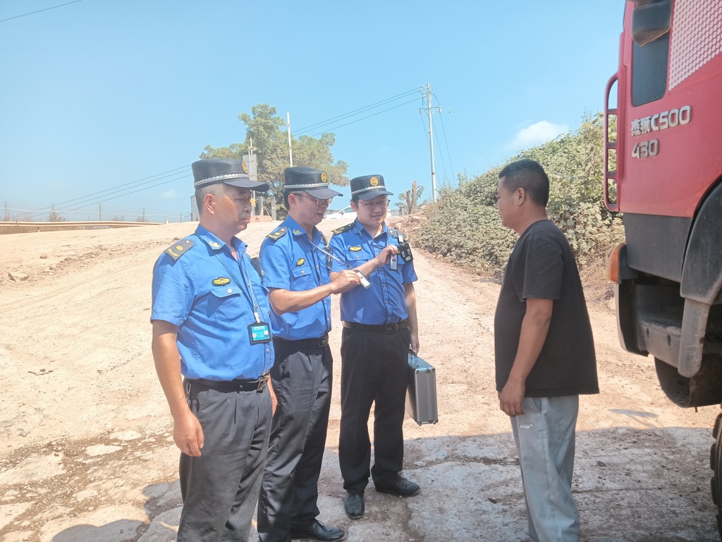 执法人员检查运渣车辆。市城市管理综合行政执法总队供图