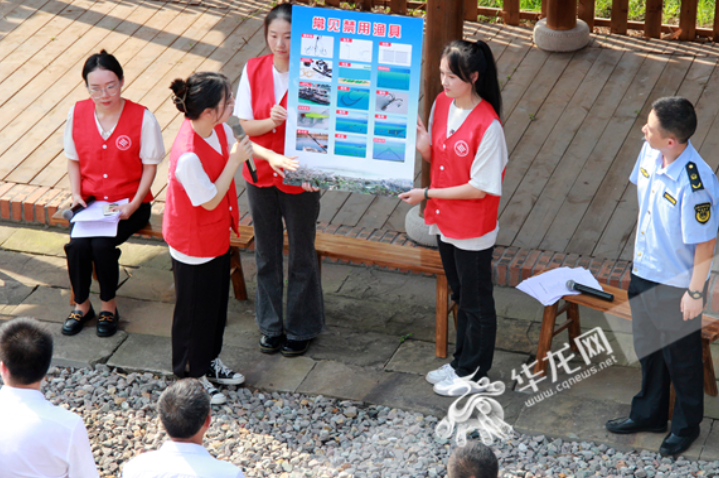 志愿者们讲解常见禁用渔具。华龙网-新重庆客户端 张颖绿荞 摄