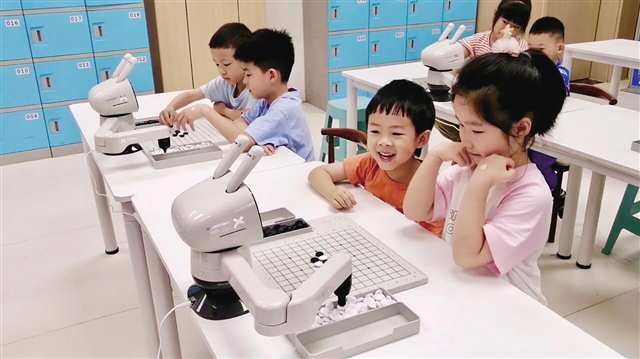 孩子们尝试围棋布局,AI智能系统实时分析引导