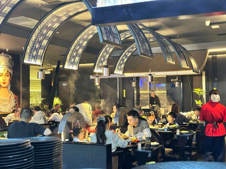 贵厨酸汤牛肉重庆首店,食客围坐享用美味。