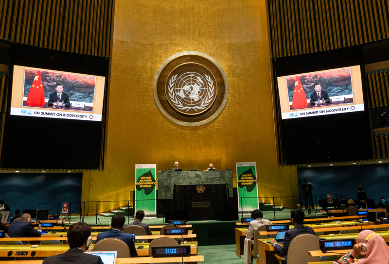 9月30日,国家主席习近平在联合国生物多样性峰会上通过视频发表重要讲话。新华社记者 鞠鹏 摄