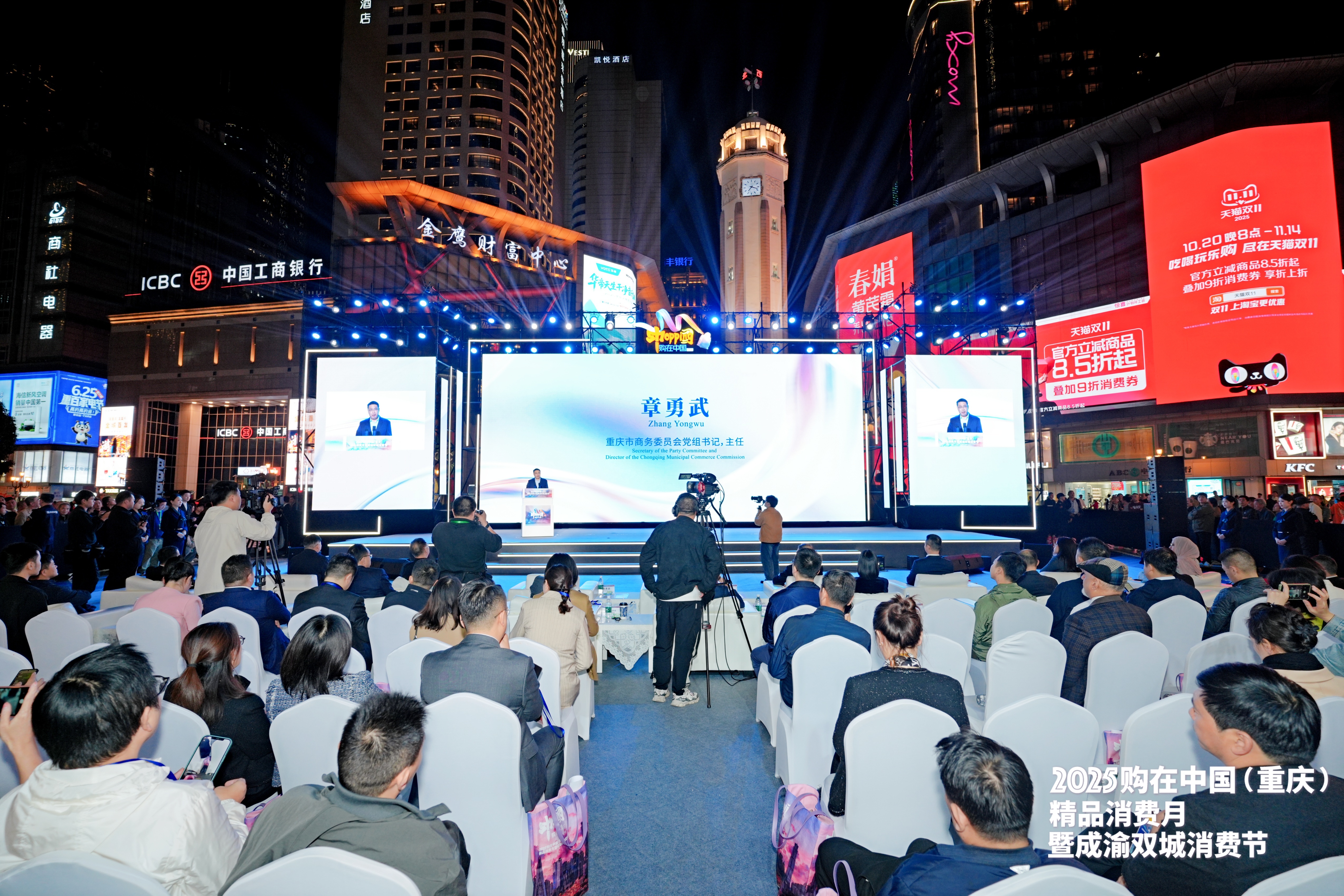 11月4日晚,2025“购在中国(重庆)精品消费月暨成渝双城消费节”在解放碑步行街启动。受访单位供图
