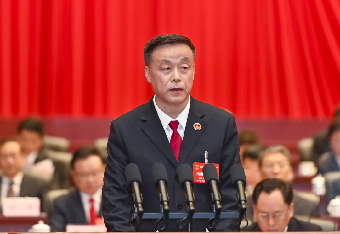 2026年1月29日,重庆市第六届人大四次会议举行第二次全体会议,王炯作市人大常委会工作报告。记者 齐岚森 摄