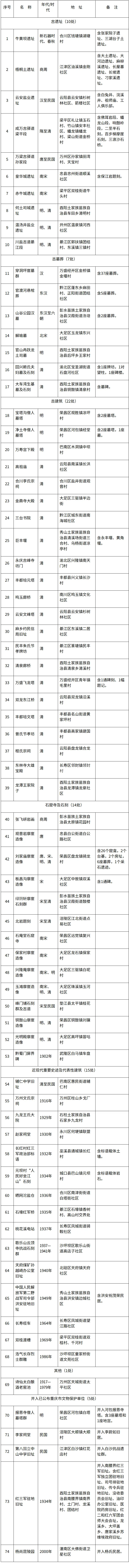 第四批重庆市文物保护单位名单(共74处)