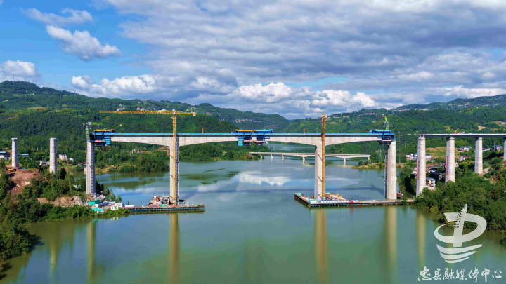 渝万高铁忠县段㽏井河双线特大桥全桥合龙