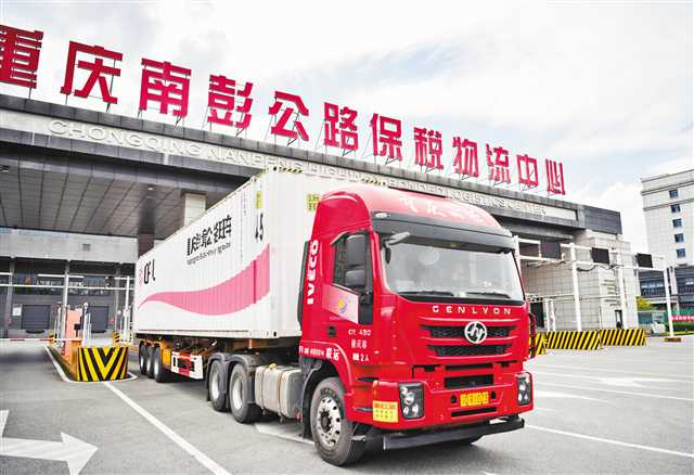 10月11日,重庆公路物流基地南彭公路保税物流中心,西部陆海新通道跨境公路班车发车。记者 谢智强 摄/视觉重庆