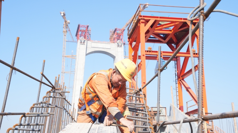 迎着晨曦的嘉陵江畔,数台塔吊挥动吊臂,来回运送钢筋和机具设备,在宝山嘉陵江大桥主墩箱梁两侧,工人们正认真检查设备运行状态,一切就绪后,挂篮行走、钢筋绑扎、模板安装、混凝土浇筑……多道工序有序紧密推进。继去年10月大桥主墩封顶后,目前主桥箱梁挂篮悬浇已施工至第3节段,正全速冲刺主桥合龙。同时引桥也在奋力从岸边向主桥一步步靠拢,预计下个月低墩区最后一联现浇箱梁浇筑完成。