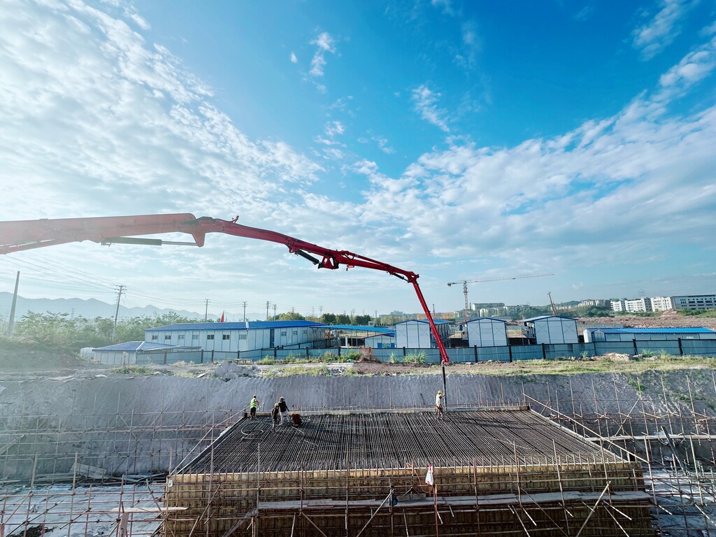 陶家隧道综合管廊顶板混凝土浇筑现场。受访者供图