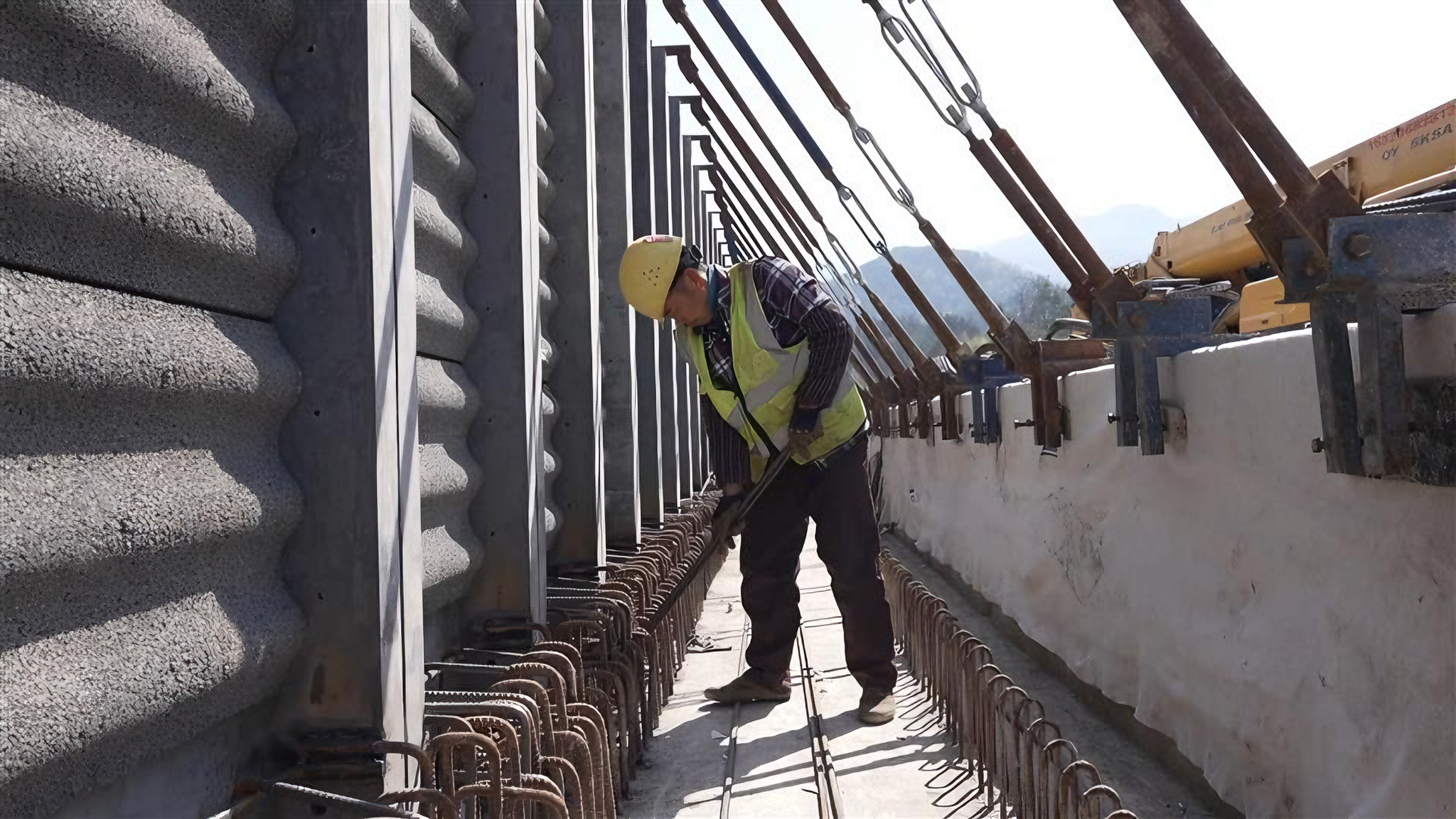 工人在检修声屏障。由于大桥桥墩、梁跨紧邻居民农田和房屋,为确保桥梁施工安全和进度,项目建设者严格落实安全穿透式管理要求,实现了施工全过程的实时监管和精准控制。