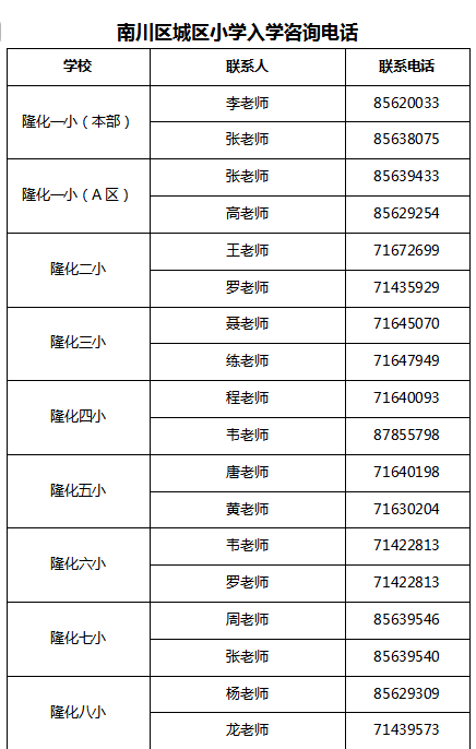 南川区招生入学一件事咨询服务电话:023-71462866(启用时间段:5月16-19日、6月19-22日8:30-18:00)。