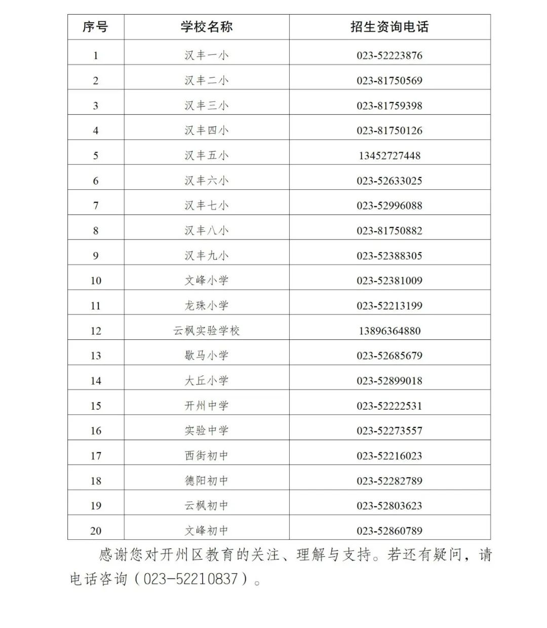 2025年开州区义务教育学校招生咨询电话