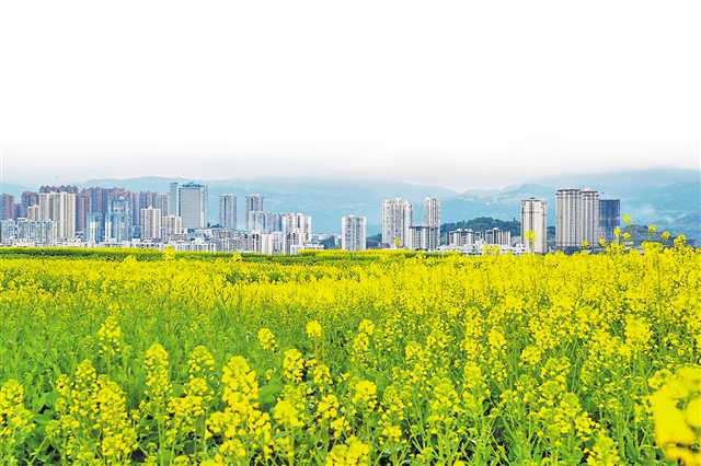 2月22日,忠县忠州水城被金色油菜花簇拥,呈现出一派春意盎然的景象。通讯员 余鸿 摄/视觉重庆