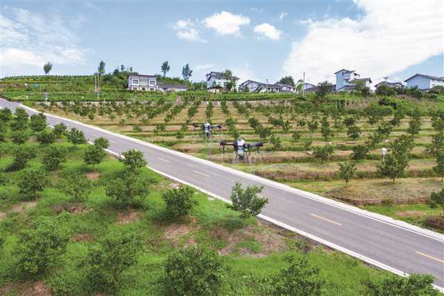 走进大盛镇青龙村,虽是高温炙烤但这里依然忙个不停。柑橘林里无人植保机飞防队忙前忙后,天上无人植保机低空飞行,地下割草机快速转动;兴隆镇的智慧种苗工厂充满工业气息,经过数字化改造的育苗流水线开足马力,近1万亩的辣椒、番茄、茄子等农作物育苗从这里走向山乡大地;桃、李、梨、杨梅、蓝莓等实用技术培训教材成为村民新宠,院坝聚会也讨论不停……