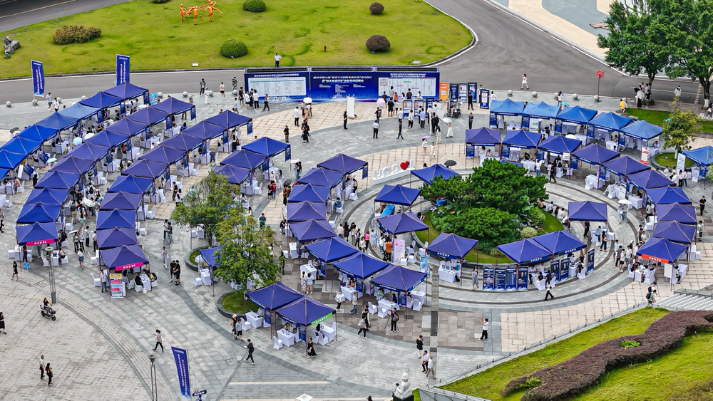 重庆市第六届“百日千万招聘专项行动”启动仪式暨“四大攻坚行动”市级专场招聘会在重庆大学举行。重庆市人力资源和社会保障局供图