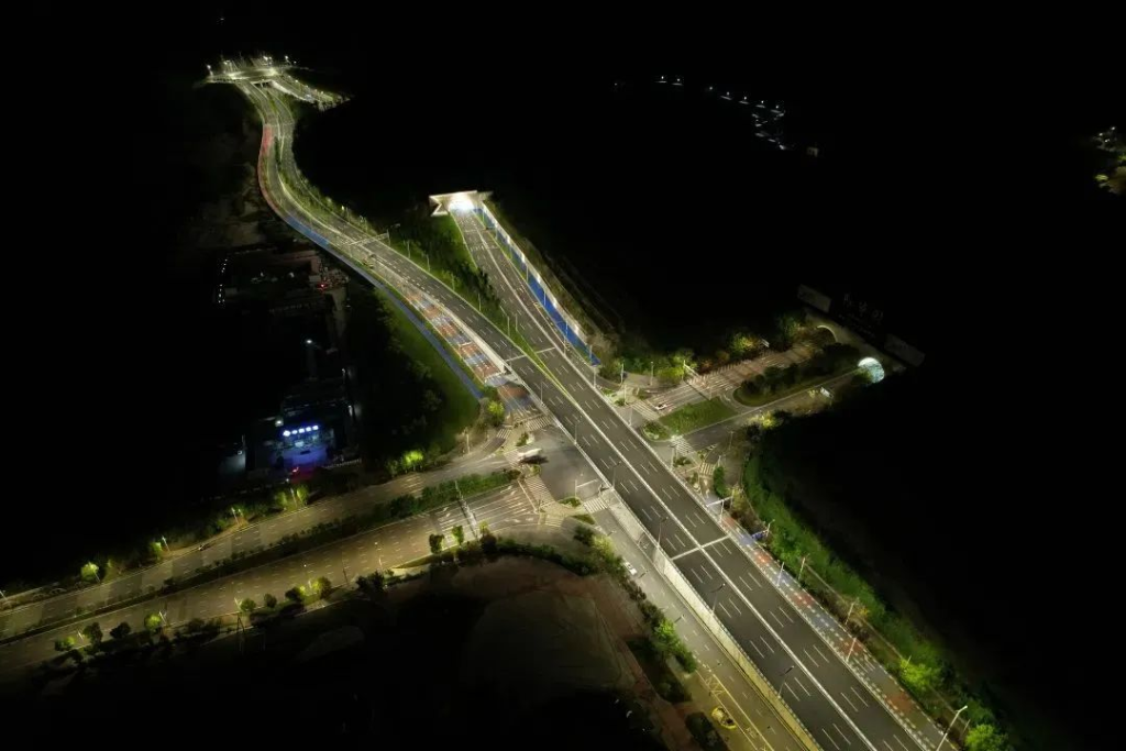 明月湖隧道口采用创新Σ元素美化;1号桥采用月球表面美化涂装,具有很强的科技感和景观效果;交安和路灯灯杆采用寓意大雁归来的多杆合一方式,天网、车路协同设备及智慧路灯运用在路灯杆件上,同时优化了交安杆件数量和道路整体观感。水电气讯管网在建道路同步建设完成,并投入运营。