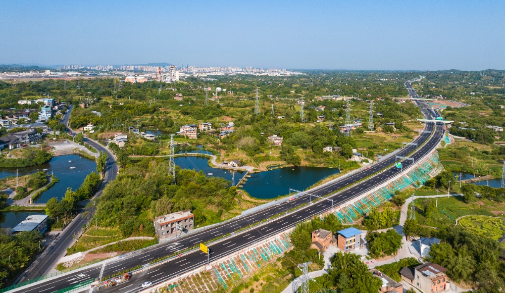 目前,渝遂复线高速路面施工已基本结束,还剩余两三条匝道正在施工,机电、交安、绿化正在同步推进,预计本月底满足通车条件。