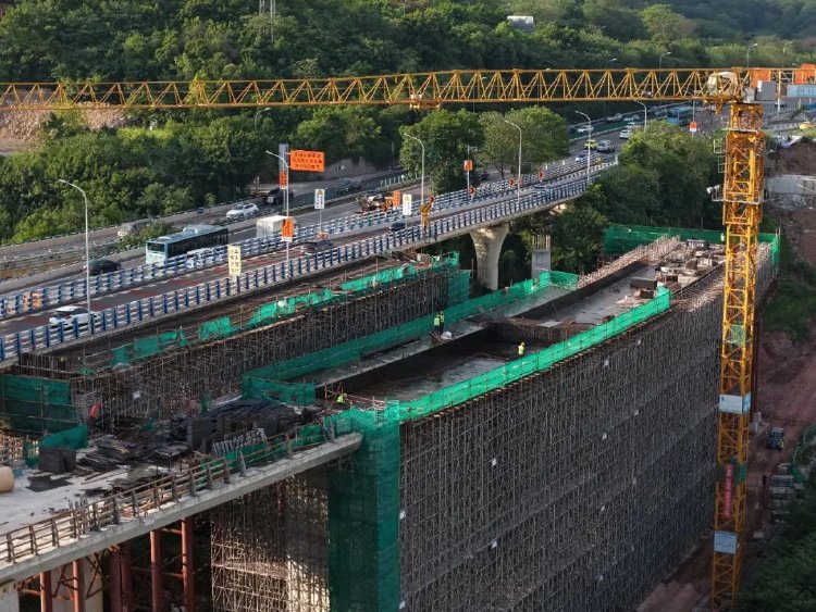 近日,寸滩港C区路网工程项目节点工程金渝隧道左线改造及新建匝道主体结构施工完成、右线主体结构已完成65%,预计到今年年底,金渝隧道右线主体结构完成施工,金渝隧道双线将于2026年6月实现通车。