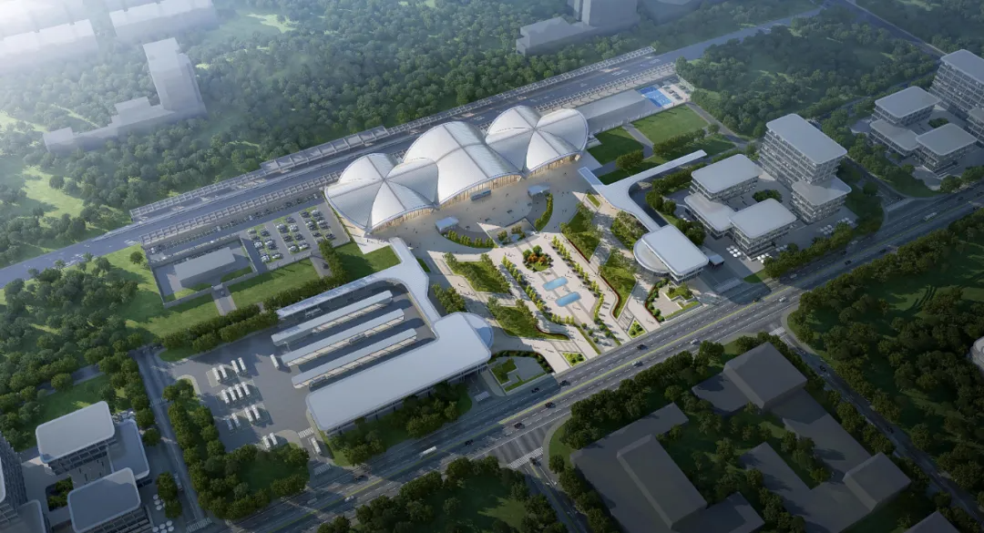 铜梁站位于重庆市铜梁区南部的石鱼镇与庆隆镇交界处,是铜梁区首座高铁站,建筑方案取意“山川成脊、龙乡铜梁”,项目建成后将进一步便捷当地人民群众出行。