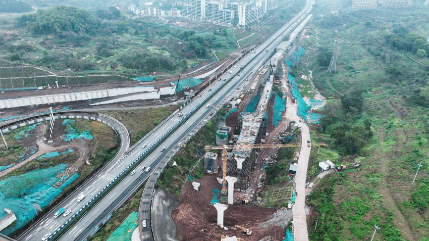 渝长三标项目现场,自去年唐桂隧道和铁山坪复线隧道双线贯通后,建设者们倒排工期、挂图作战,持续刷新项目“进度条”。海尔路出入口处,桥梁下部结构已全部成型,上部结构施工正加速推进,预计5月全部完成。当前项目整体形象进度达83%,这条城市地下“大动脉”正加速成型,即将发挥交通枢纽作用。