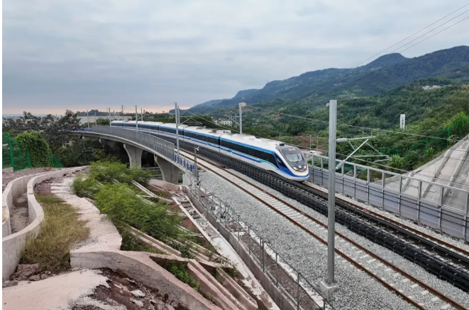 自开工以来,施工方面对线路长、工况复杂,交叉施工密集等多重挑战,科学统筹、精准施策,通过设置,4个主铺轨基地与6个辅助铺轨基地同步作业,采用“装配式轨道系统”实现多作业面平行流水施工,针对中梁山隧道、廖家溪轨道专用桥等重难点区段,运用BIM技术模拟施工、精密测量控制,攻克长距离隧道铺轨、大跨度桥梁轨道精调等技术难题,同时,严格把控钢轨焊接、轨道精调,道床浇筑等关键工序质量,确保轨道几何尺寸误差控制在毫米级。