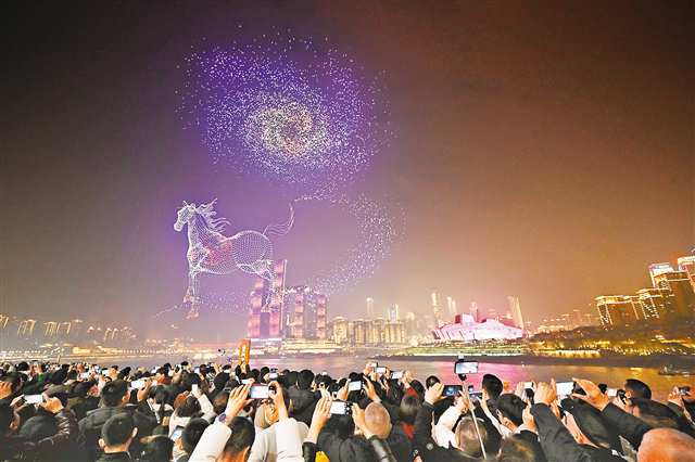 除夕夜万架无人机送上重庆版“年夜饭” 骏马奔腾启新程 星河焕彩绘锦绣