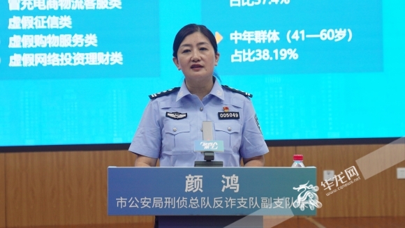 市公安局刑侦总队反诈支队副支队长颜鸿作主题分享。华龙网-新重庆客户端记者 欧武夷 摄