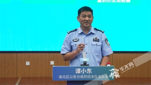 渝北区公安分局刑侦支队支队长谭小东作主题分享。华龙网-新重庆客户端记者 欧武夷 摄