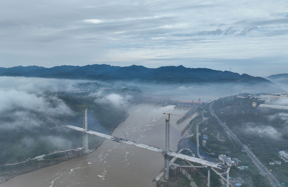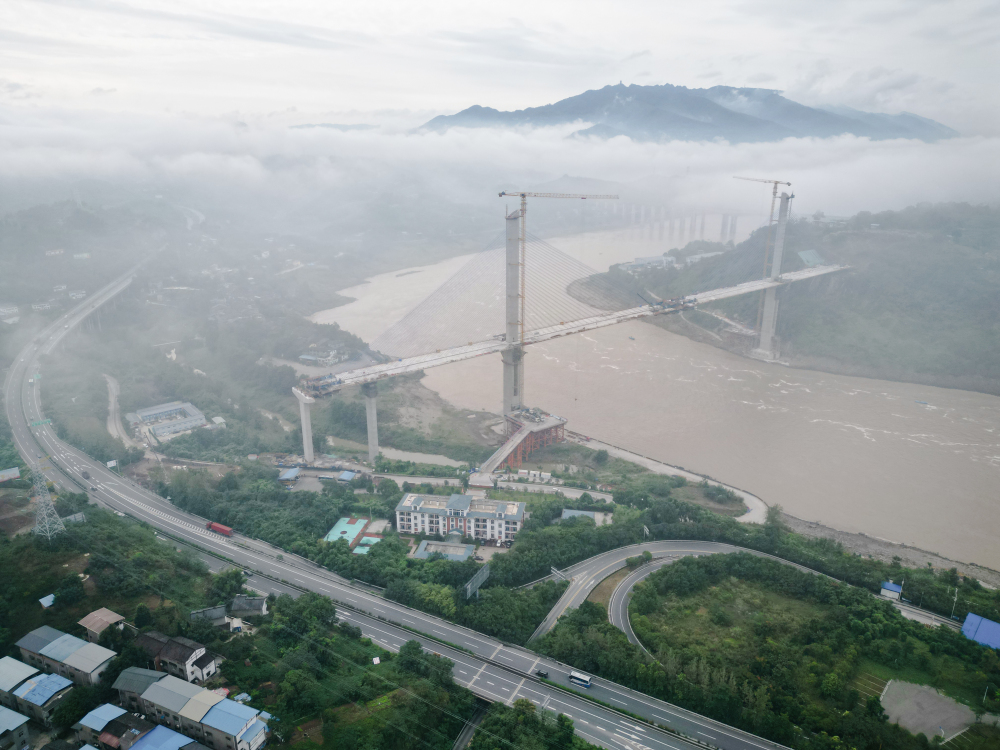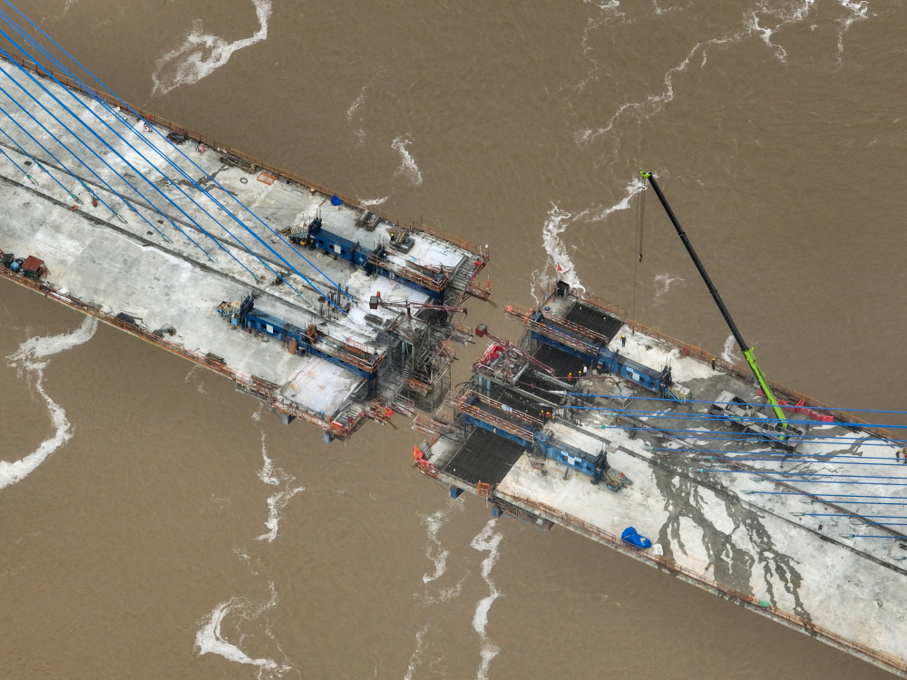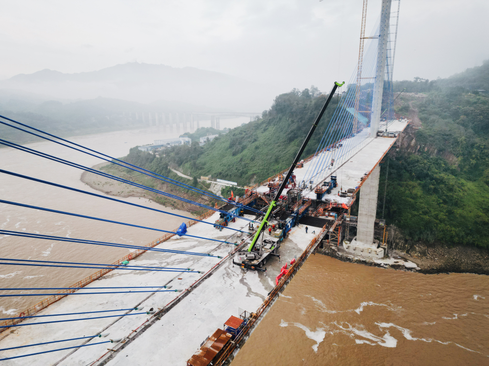 草街嘉陵江特大桥主跨345米,两个主塔设计总高326.6米,大桥设计为“塔梁墩固结体系”中央双索面非对称式预应力混凝土梁斜拉桥,采取一跨过江设计形式,桥面为“一字形”大纵坡设计。