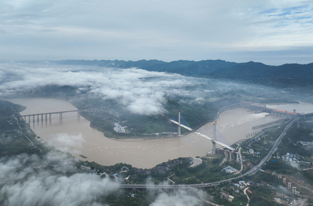 俯瞰建设中的渝武高速复线草街嘉陵江特大桥。记者 万难 实习生辛飞 摄