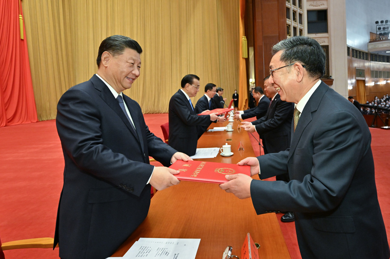 11月3日,2020年度国家科学技术奖励大会在北京人民大会堂隆重举行。这是习近平等党和国家领导人为获得国家自然科学奖、国家技术发明奖、国家科学技术进步奖的代表颁发证书。新华社记者 李学仁 摄