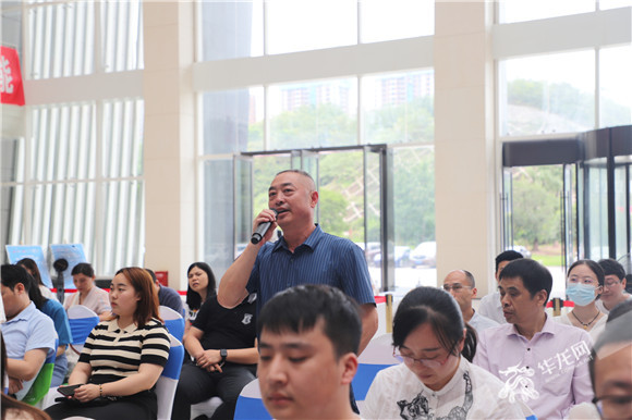 群众对关心的商品房预售问题现场提问。华龙网-新重庆客户端记者 岳芷亦 摄