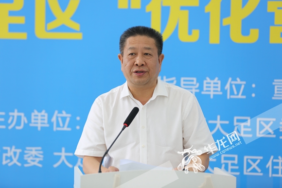 发布会现场,大足区营商办副主任胡向前讲解了大足区近年来在优化营商环境方面的种种举措。“大足组建了‘大足区优化营商环境服务中心’,实行周末轮休上岗,为企业提供延时贴心服务;同时大足区还对标北京、上海、新西兰,制定11个指标工作方案,让‘开办企业’最快1小时办结,实现零成本、无纸化、不见面申办营业执照。”胡向前表示。